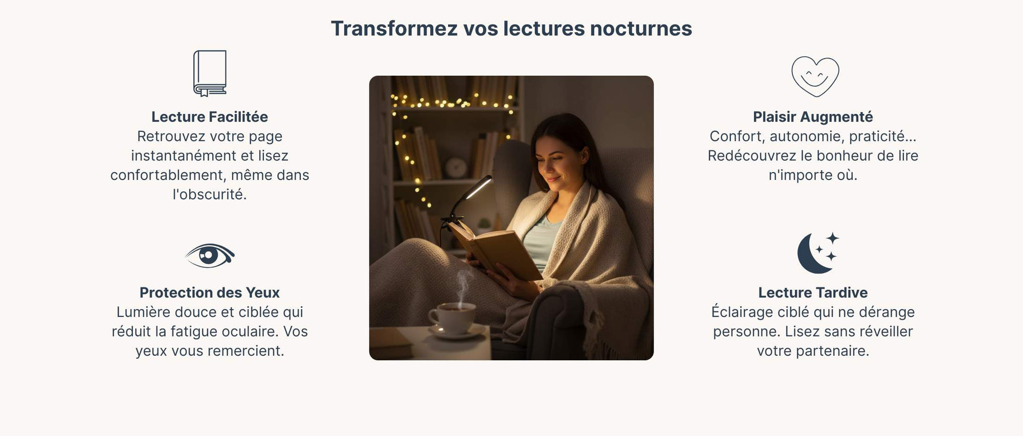 Notre boutique française est spécialisée dans les accessoires de lecture : lampes de chevet, lampes de lecture rechargeables, marque-pages et étuis pour Kindle.Nous concevons et sélectionnons chacun de nos produits sous notre propre marque, afin de garantir :