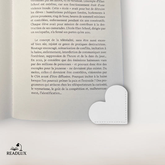 Marque-Page en Cuir Blanc Forme Cœur | Pureté et Minimalisme