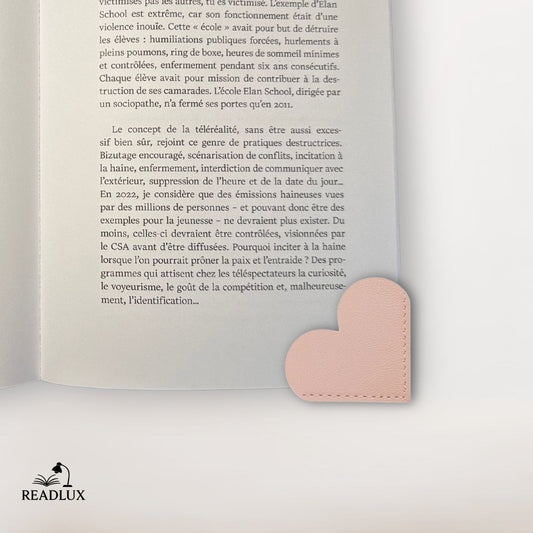Marque-Page en Cuir Rose Poudré Forme Cœur | Charme Doux et Pratique