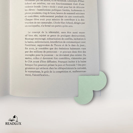 Marque-Page en Cuir Vert d’Eau Forme Cœur | Fraîcheur et Douceur