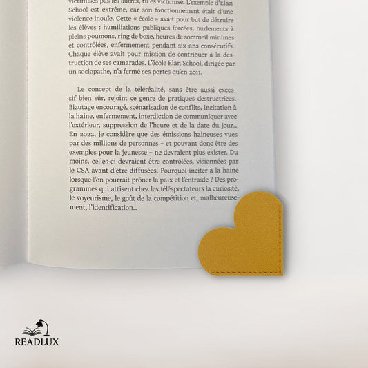 Marque-Page en Cuir Jaune Moutarde Forme Cœur | Élégance et Lumière