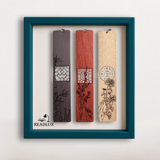 Collection de 3 Marque-Pages Bois | Gravures Florales et Élégance Naturelle