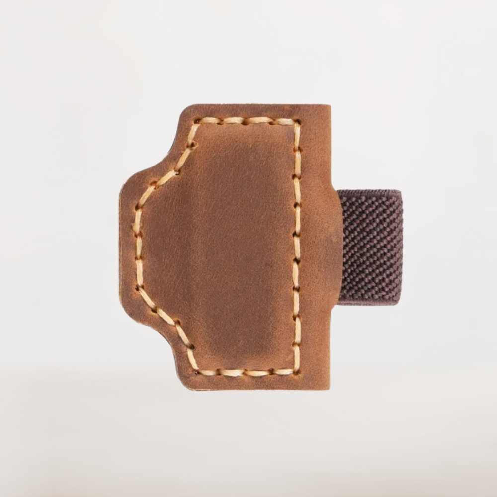 Ce marque pages cuir séduit par son allure minimaliste et sa fonctionnalité. Son élastique latéral assure un maintien sûr, sans abîmer vos pages. Léger et compact, il se glisse aisément entre les feuillets, pour un usage quotidien tout en confort.