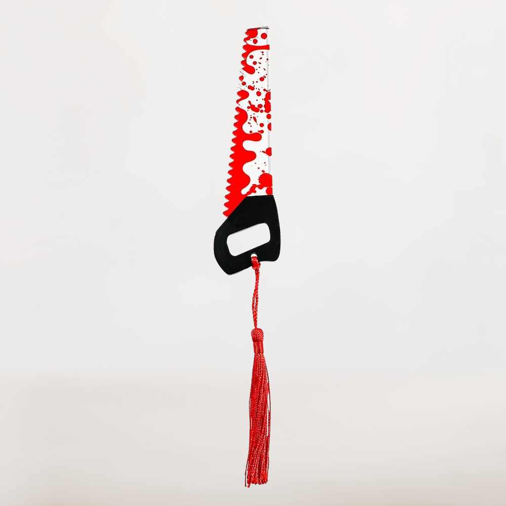 Chaque lecture devient un crime prémédité avec ce marque page halloween en forme de scie ensanglantée. Sa denture acérée, sa poignée sombre et ses éclaboussures rouge vif évoquent les scènes les plus mythiques du cinéma d’horreur. Un accessoire aussi tranchant qu’irrésistible, parfait pour les esprits audacieux et les bibliothèques hors du commun.