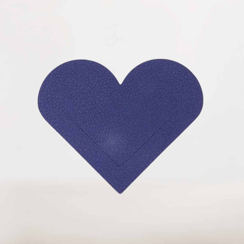 Marque page en cuir violet foncé en forme de cœur texturé
